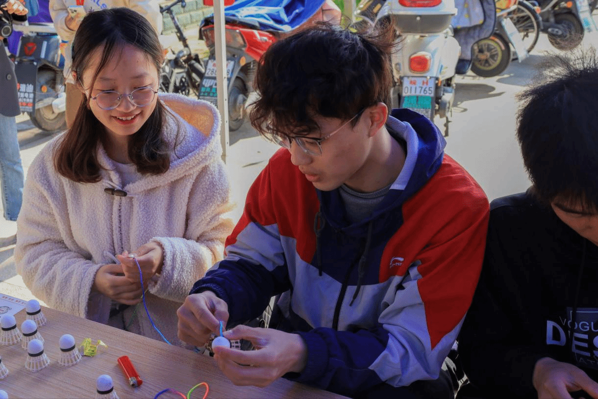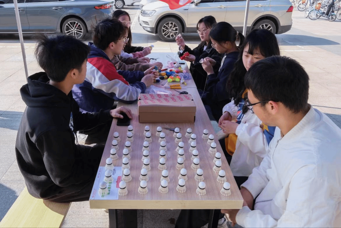协会准备了50余个废弃羽毛球、10余捆编织彩绳及剪刀、打火机、钩针、锥子、胶棒等编织工具。协会会长、2021级物理学专业2班的陈康乐介绍到,此次活动是协会的传统活动,所用羽毛球都是员工们在平时训练中产生的、不再符合比赛用球规定的废球,旨在合理利用废弃羽毛球,帮助同学们培养爱好运动、勤俭节约的意识。