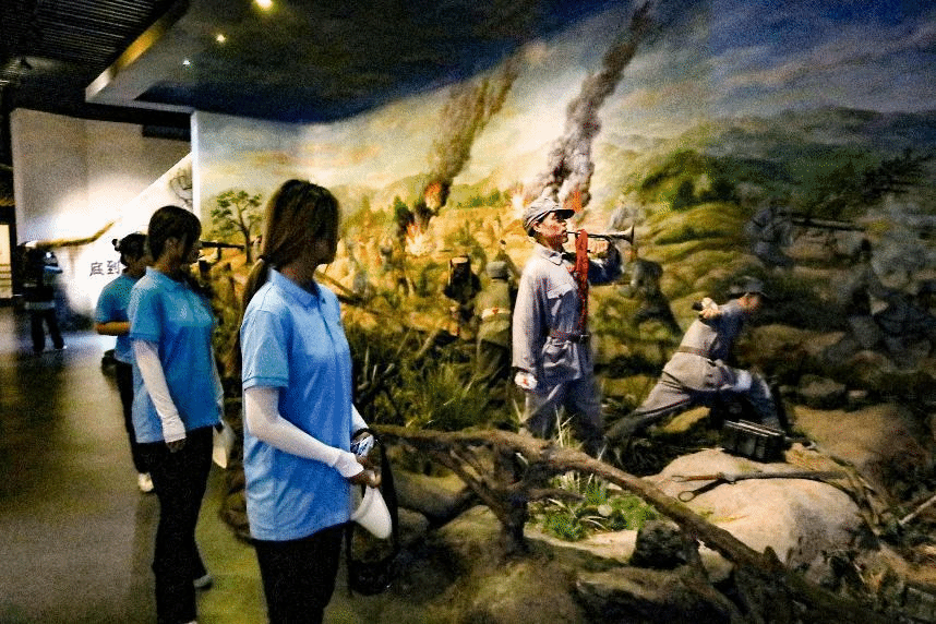 幻影成像、物理沙盘、智能触摸屏……烈士纪念馆通过多种形式还原历史事件,并配以丰富的图文解说和文物,使团队成员们深刻了解到在不同时期为安庆革命事业牺牲的烈士事迹。“没有先烈们的付出,就没有繁荣富强的祖国,人民也过不上幸福美好的生活。”实践团成员、体育教育专业2021(4)班的阮懋为是一名退伍员工,参观完烈士纪念馆,他表示:“我会争取向前辈们看齐,做好员工本职工作,学好专业知识,尽自己所能为祖国做贡献!”
