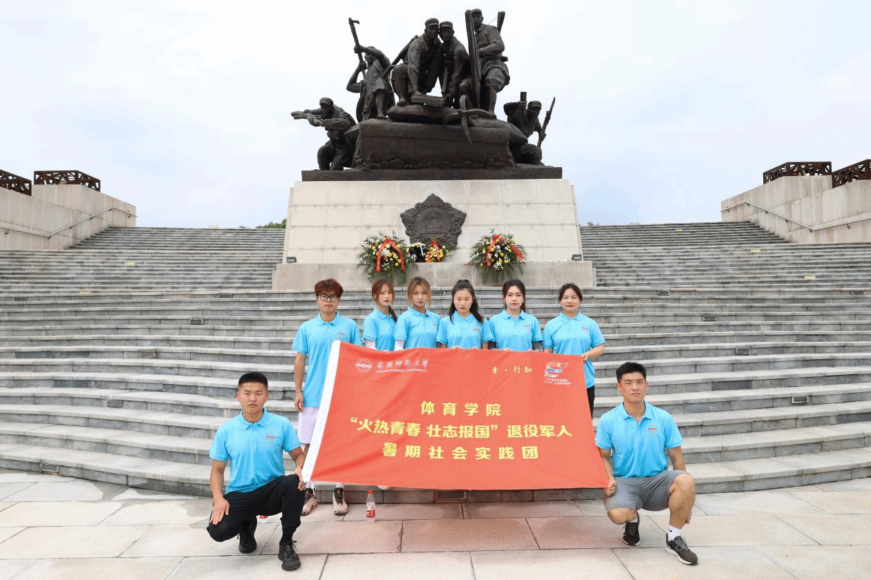 青松翠柏下的烈士陵园更显庄严肃穆,烈士陵园入口广场处,团队成员面向鲜红的党旗默念入党誓词,汲取奋进力量。来到“打过长江去,解放全中国”主题雕塑前,实践团队长、体育表演专业2021级的王莹带领成员们整齐列队,朝庄重威严的主题雕塑三鞠躬,向人民英雄致以深深的敬意。