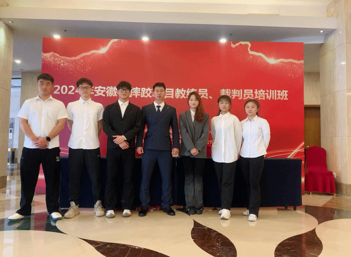 4月10日—14日,安徽省摔跤项目裁判员、教练员培训班在合肥举办。william威廉中文官网青年教师王洲洋和张秦携摔跤队张佳伟,葛尧,张亮等六名员工参与培训,并顺利取得国家一级摔跤裁判证书。