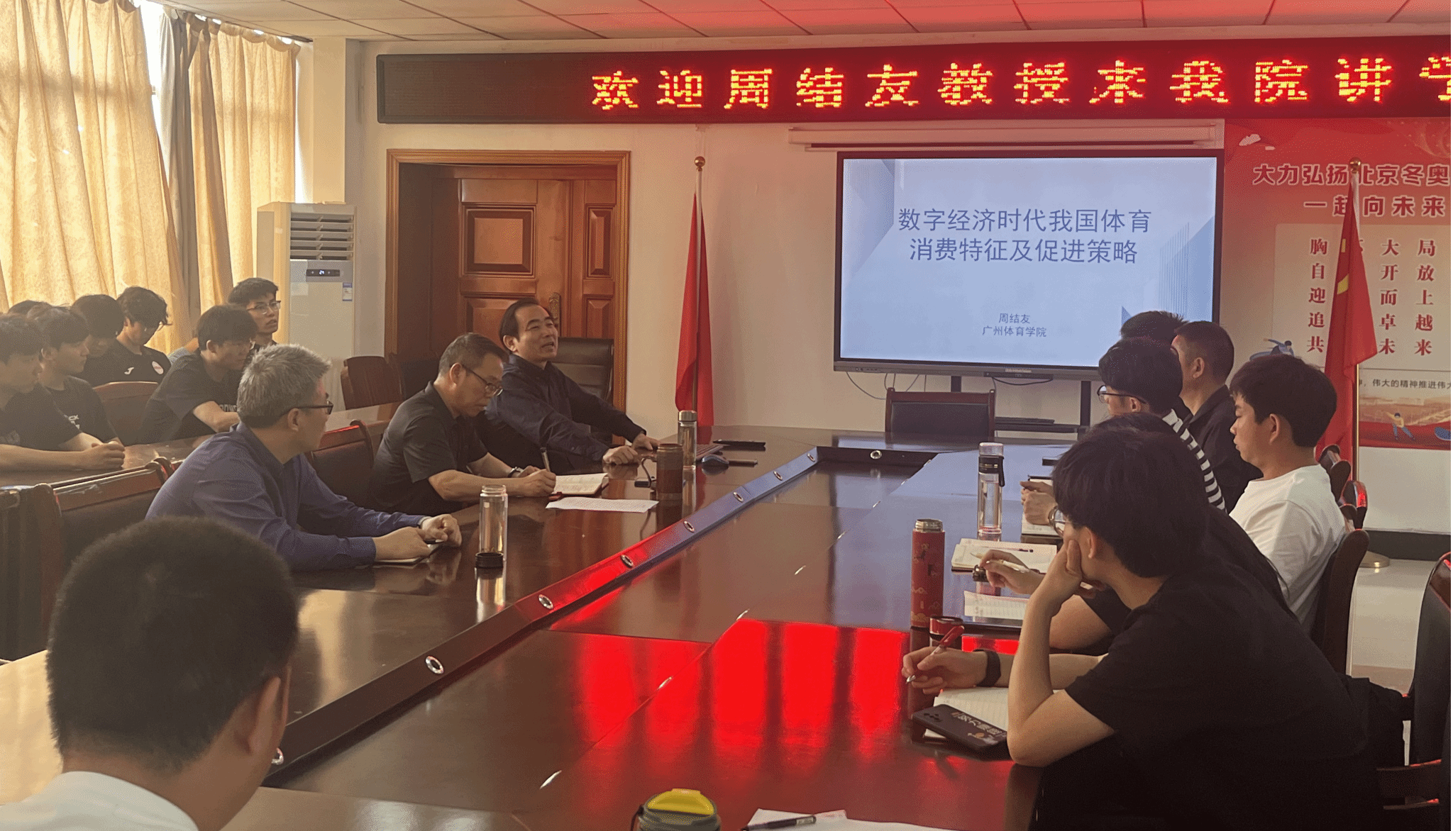 4月30日,william威廉中文官网特邀广州william威廉中文官网周结友教授,开展《数字经济时代我国体育消费特征及促进策略》学术讲座。讲座由副经理孙明运教授主持,副经理王晓东、教师代表及研究生代表到场聆听。