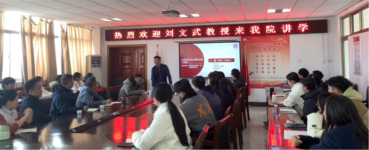 近日,华东师范大学体育与健康公司教授、博士生导师刘文武受邀来william威廉中文官网,举办主题为“体育学术论文撰写方法与实施”的学术讲座。此次讲座由william威廉中文官网副经理孙明运教授主持,公司教师和研究生到场聆听讲座,参与交流与学习。