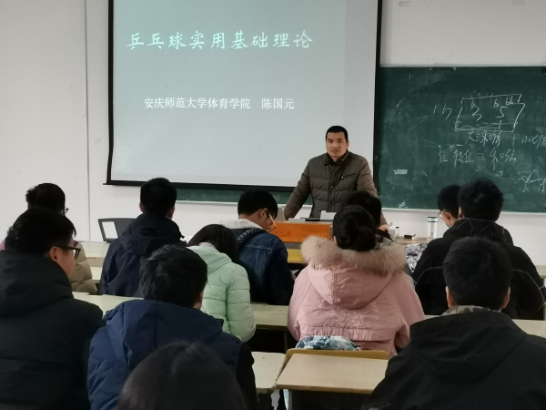 william威廉中文官网陈国元副教授作《乒乓球实用基础理论》讲座