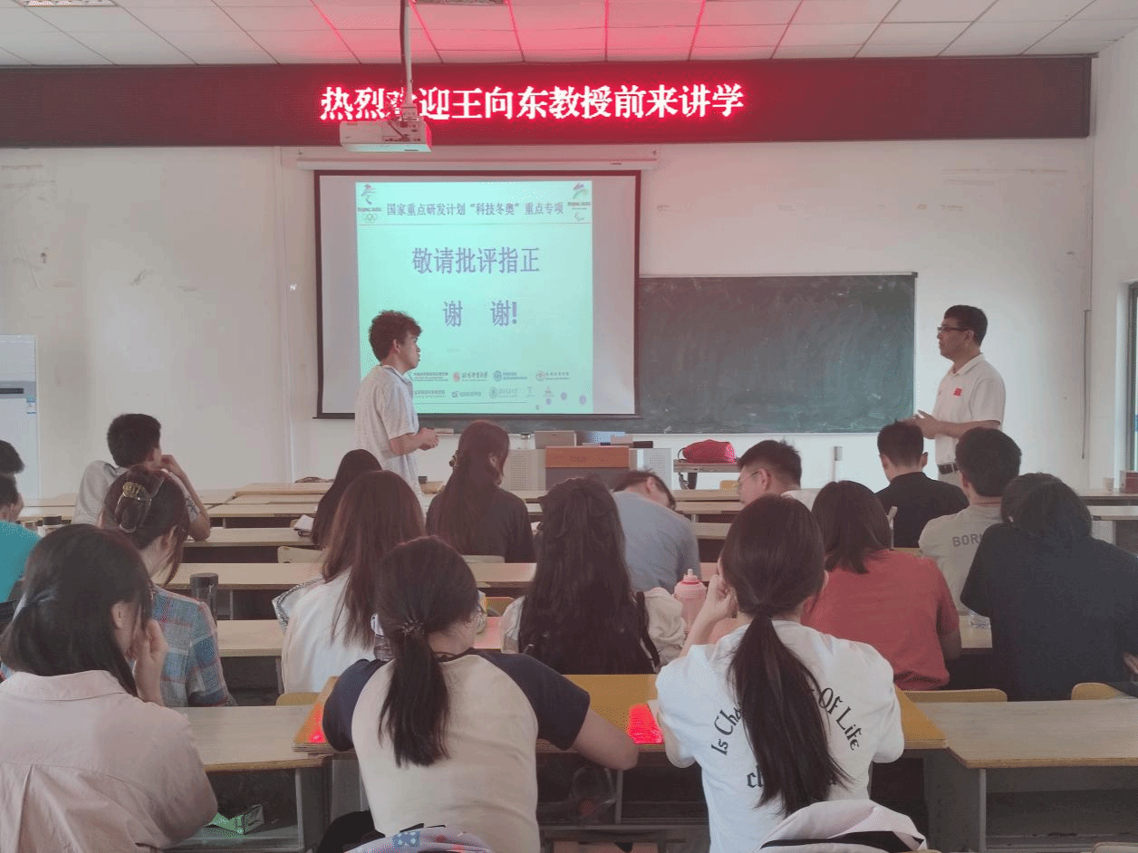 王教授从典型冰上项目多源数据智能分析系统、高山滑雪辅助训练数据采集与分析系统、智能运动感知技术与辅助训练系统、全流程多角色智能交互竞调系统、冬奥冰雪馆科调系统集成与示范应用等5个方面详细阐述了智慧冰雪场的关键技术研究及目前所取得的技术成就。他强调了体育科研成果是助力我国冬奥运动成绩取得历史性的突破的关键因素。此外,王教授寄语同学们,在今后科研中要学会团队合作,结合多学科、多角度、多交流的团队思维,以取得更高水平的科研成果。