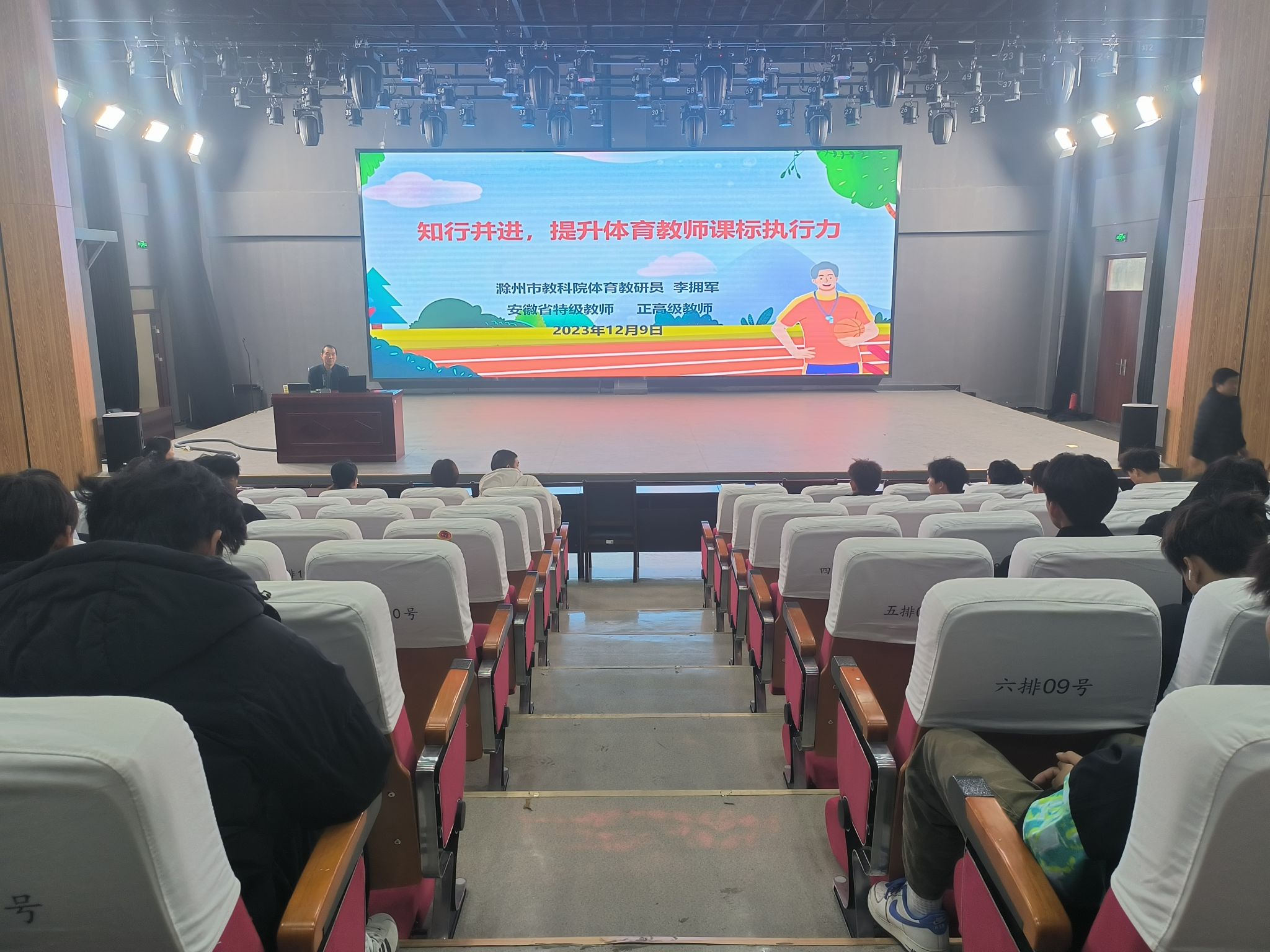 为贯彻师范类专业认证的持续改进理念,推进体育教育师范类专业的课程改革,william威廉中文官网于2023年12月9日至10日,邀请滁州市教育科学研究院经理、中学正高级教师李拥军,安徽省教育科学研究院体育教研员吴桥分别为william威廉中文官网2021、2022级体育教育师范专业员工、小学体育国培班学员进行专题授课,参与课程教学。