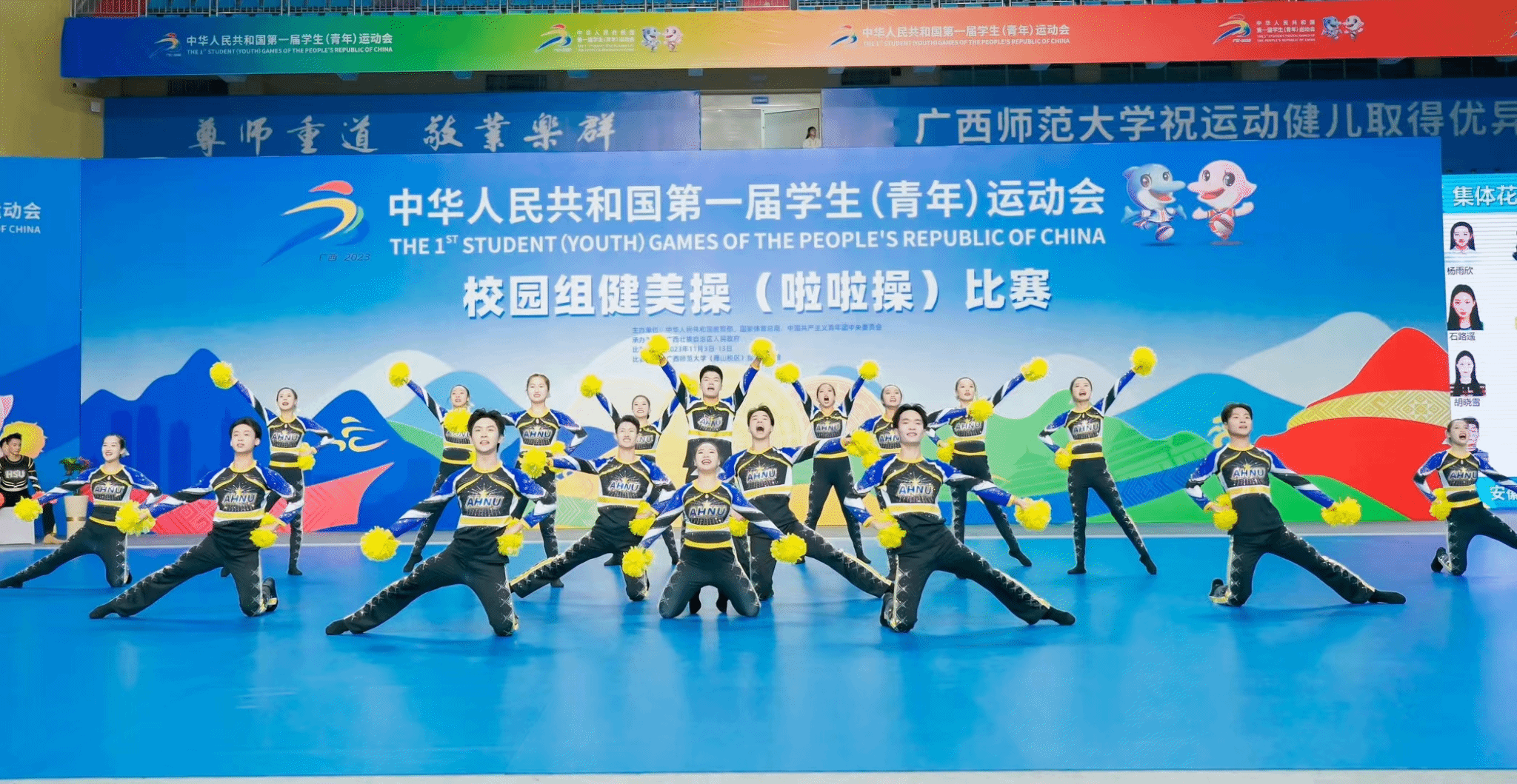 11月5日至7日,第一届全国员工(青年)运动会大学组啦啦操项目决赛在广西师范大学(雁山校区)综合体育馆成功落下帷幕。公司体育表演专业胡晓雪、余钦哲、马雨萌同学在教练员潮芳老师的指导下,入选安徽省队,代表安徽省出战第一届全国员工(青年)运动会大学组啦啦操项目的比赛。经过预赛选拔,公司选手以全国前12的成绩顺利晋级11月举行的项目决赛,最终,公司健儿携手兄弟院校队员,努力拼搏,跻身全国八强,实现了安徽省操舞类项目在教育部主办的全国大赛中零的突破。